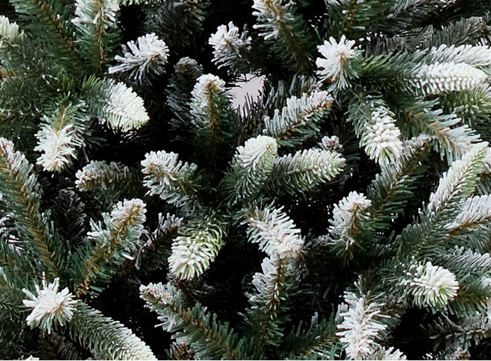 Первые зимние морозы оставили свой ледяной блеск на этих елях. Искусственный иней, используемый в производстве елок данной категории, не имеет запаха, токсичности и крепко держится на ветках. В отличие от снега, иней обволакивает каждую иголочку. Текстура материала создает эффект необыкновенной натуральности.