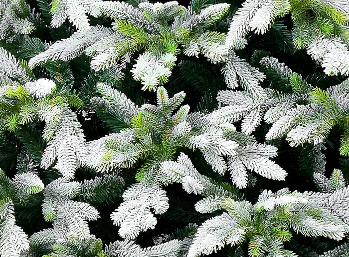 Первые зимние морозы оставили свой ледяной блеск на этих елях. Искусственный иней, используемый в производстве елок данной категории, не имеет запаха, токсичности и крепко держится на ветках. В отличие от снега, иней обволакивает каждую иголочку. Текстура материала создает эффект необыкновенной натуральности.