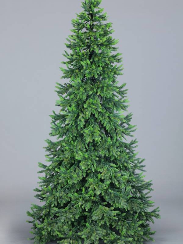 Классические зеленые ели элегантной конической формы. Уникальной особенностью этих елок является цветовая вариация в ветвях. Ветка такая же коричневая, как в природе, а иглы имеют красивый зеленый градиент. К концам ветки становятся светлее, создавая впечатление молодого прироста и ощущение свежего леса.