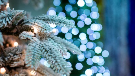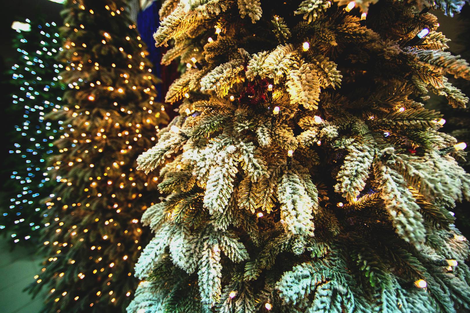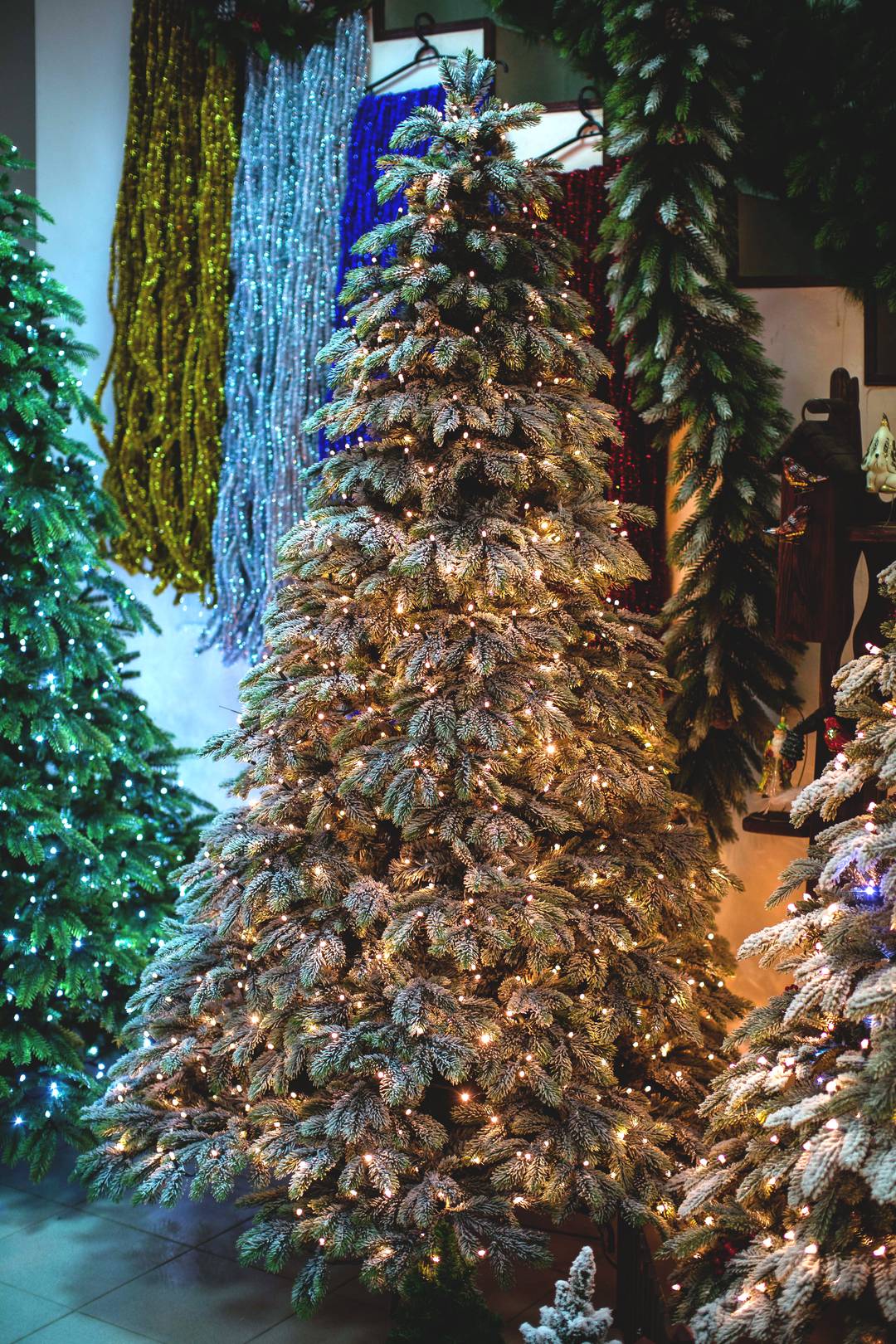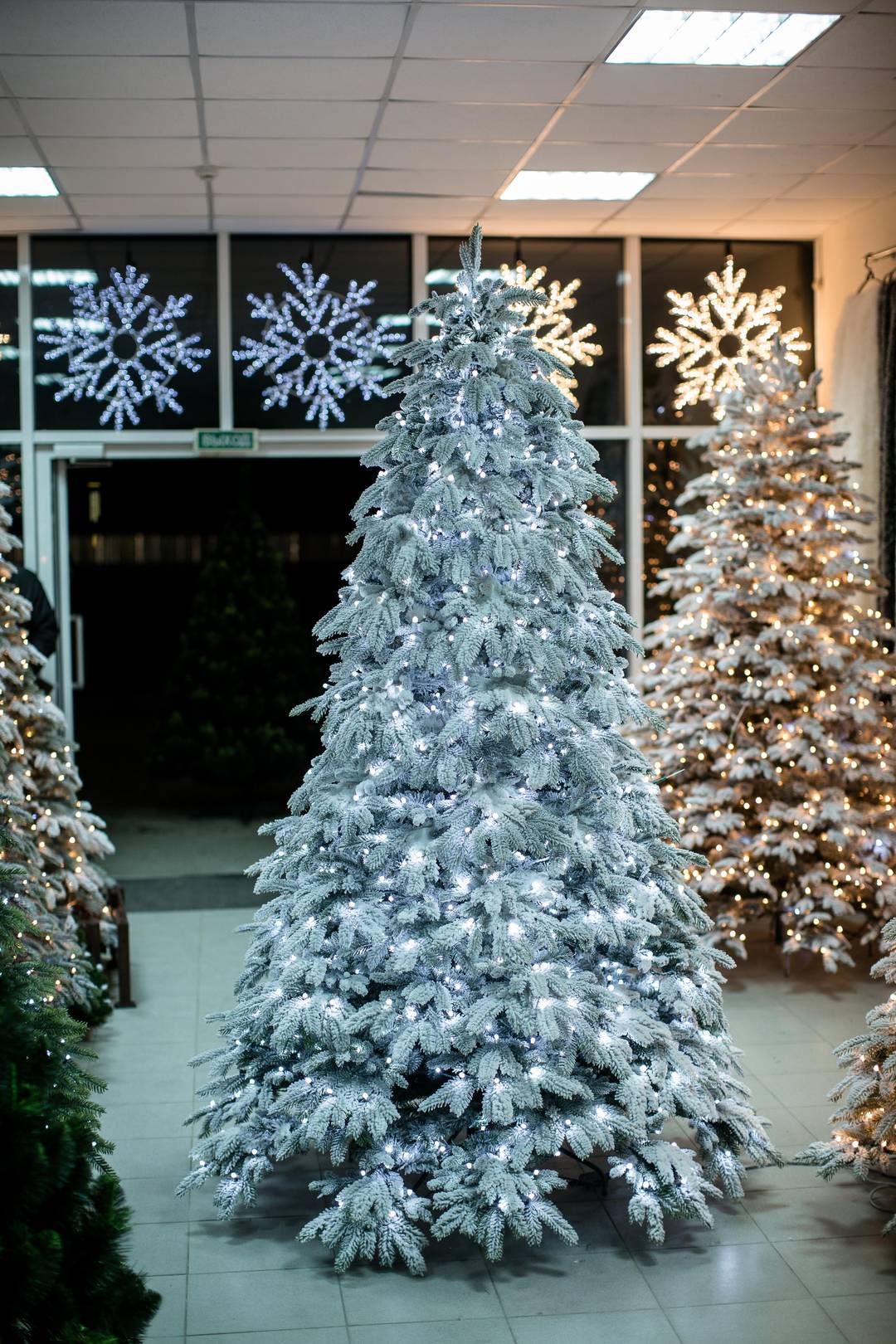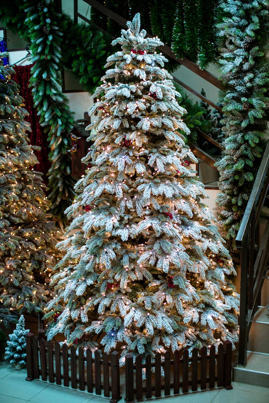 ЕЛЬ В СНЕГУ СО ВСТРОЕННЫМИ ЛАМПОЧКАМИ
