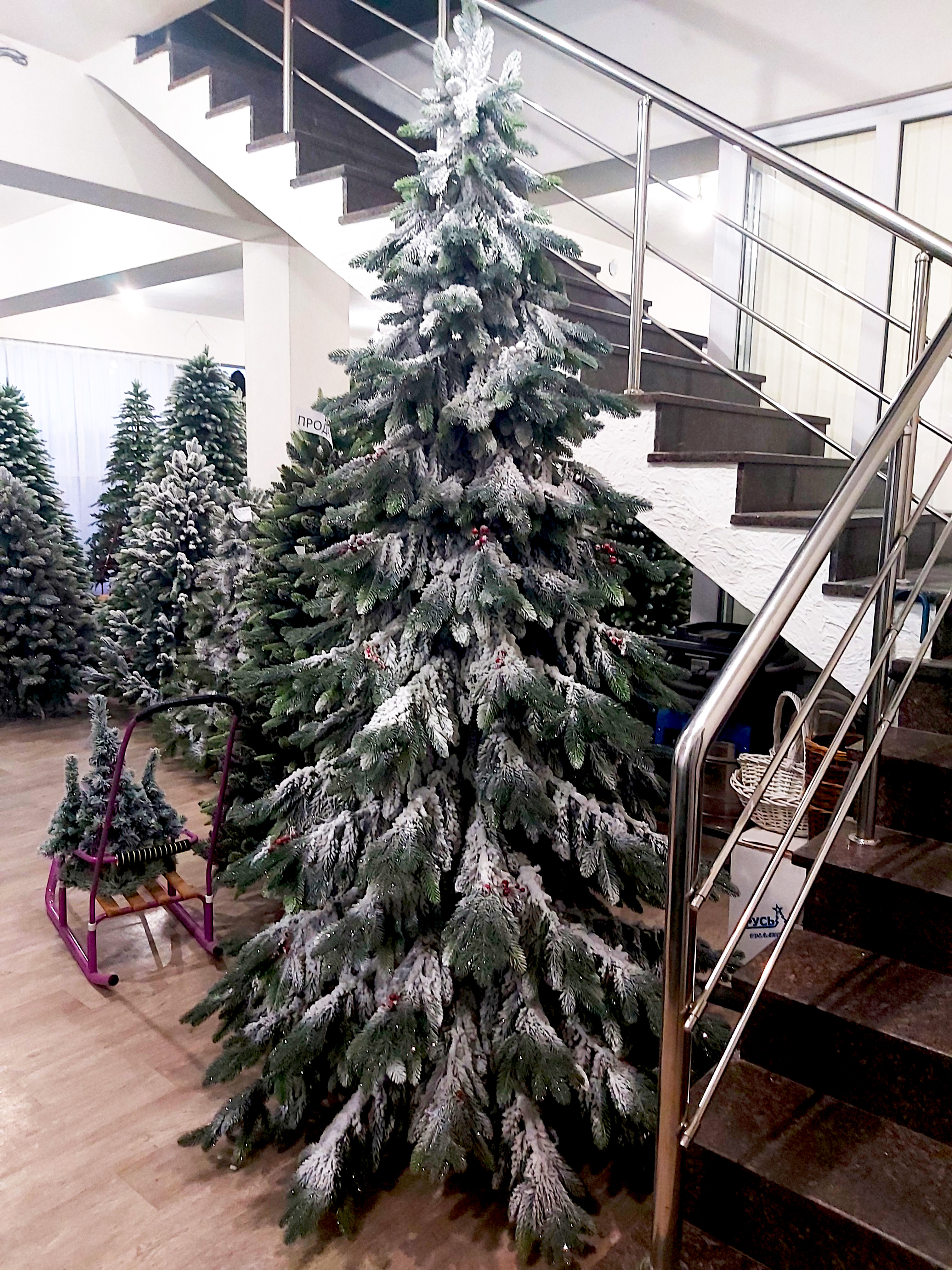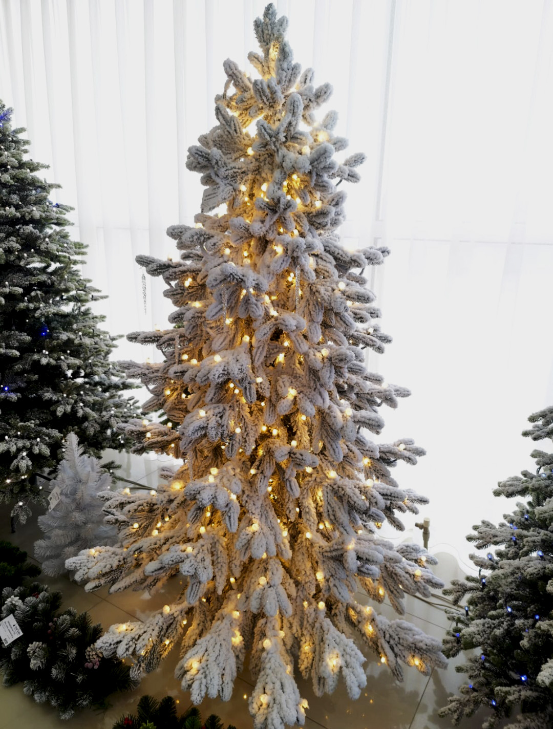 ЕЛЬ В СНЕГУ СО ВСТРОЕННЫМИ ЛАМПОЧКАМИ