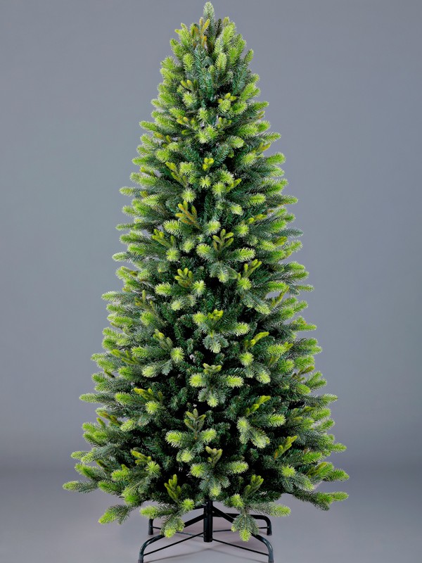 Классические зеленые ели элегантной конической формы. Уникальной особенностью этих елок является цветовая вариация в ветвях. Ветка такая же коричневая, как в природе, а иглы имеют красивый зеленый градиент. К концам ветки становятся светлее, создавая впечатление молодого прироста и ощущение свежего леса.