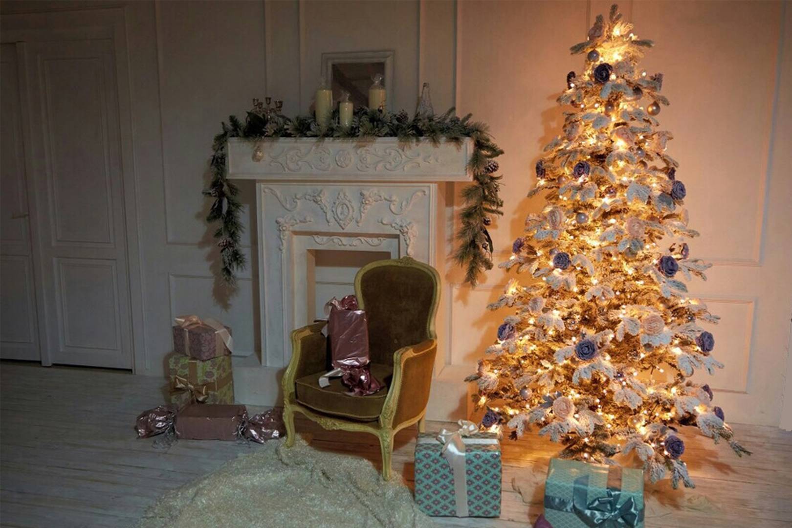 ЕЛЬ В СНЕГУ СО ВСТРОЕННЫМИ ЛАМПОЧКАМИ