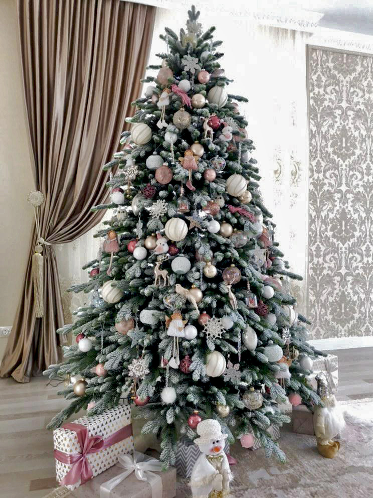 ЕЛЬ В СНЕГУ СО ВСТРОЕННЫМИ ЛАМПОЧКАМИ