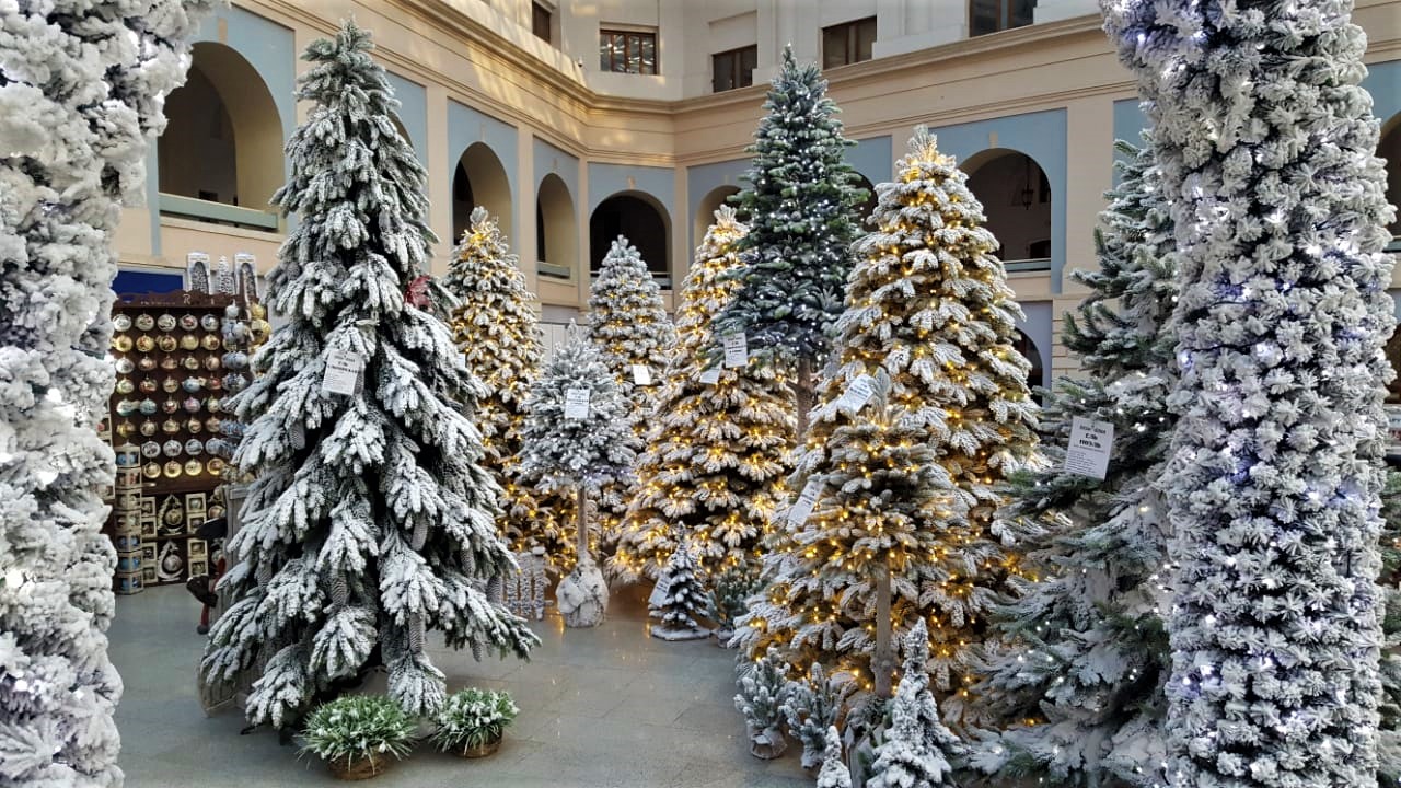 ЕЛЬ В СНЕГУ СО ВСТРОЕННЫМИ ЛАМПОЧКАМИ