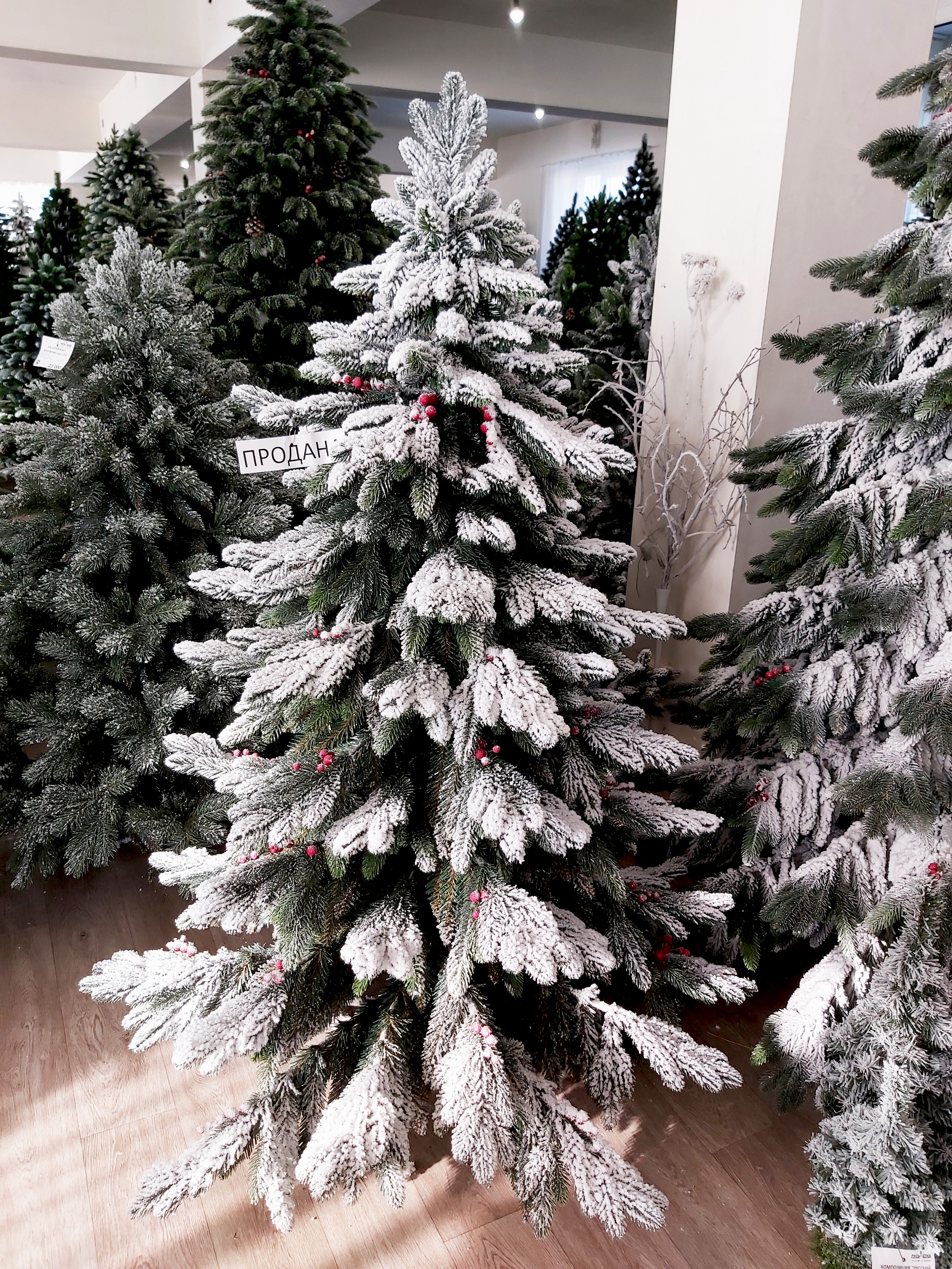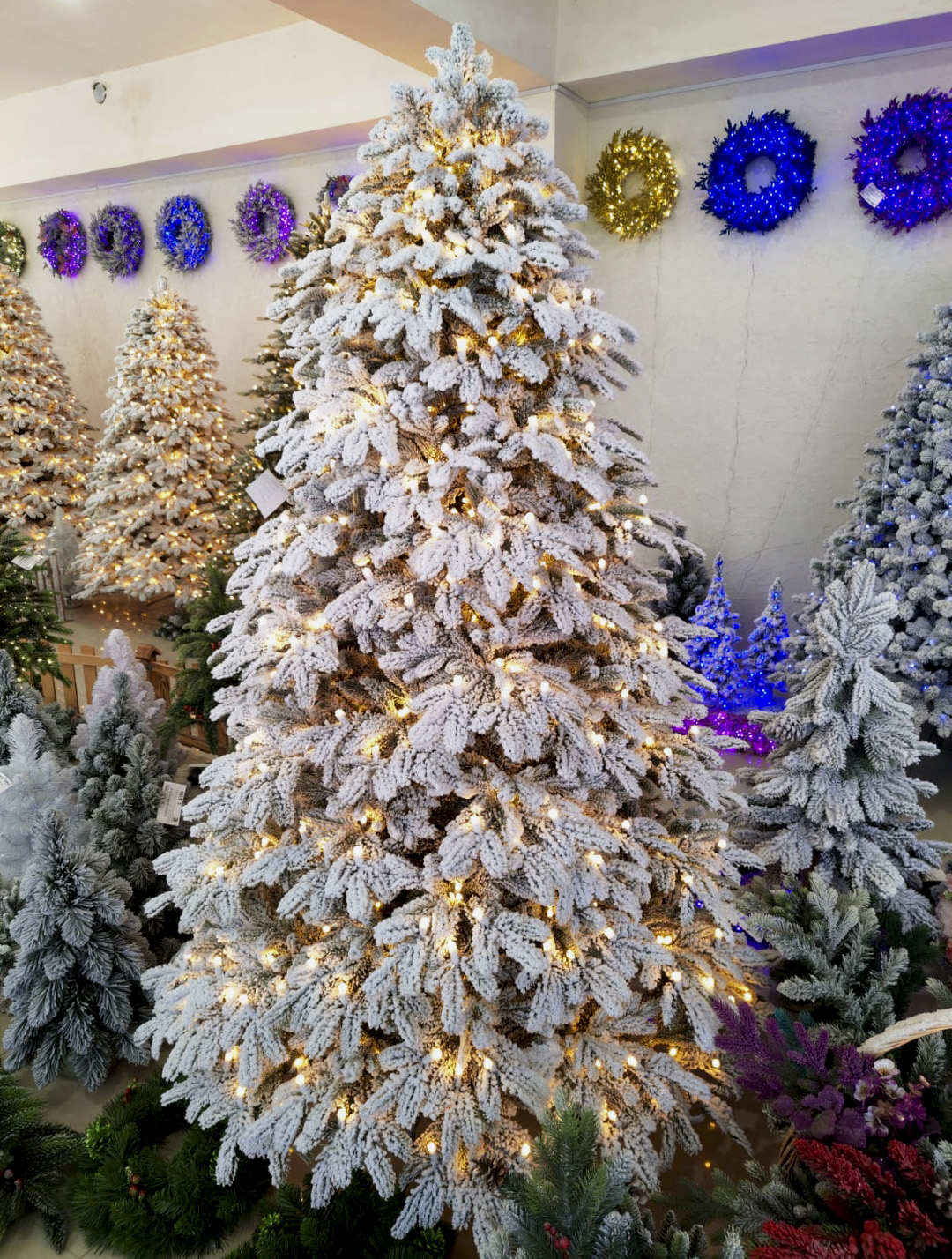 ЕЛЬ В СНЕГУ СО ВСТРОЕННЫМИ ЛАМПОЧКАМИ